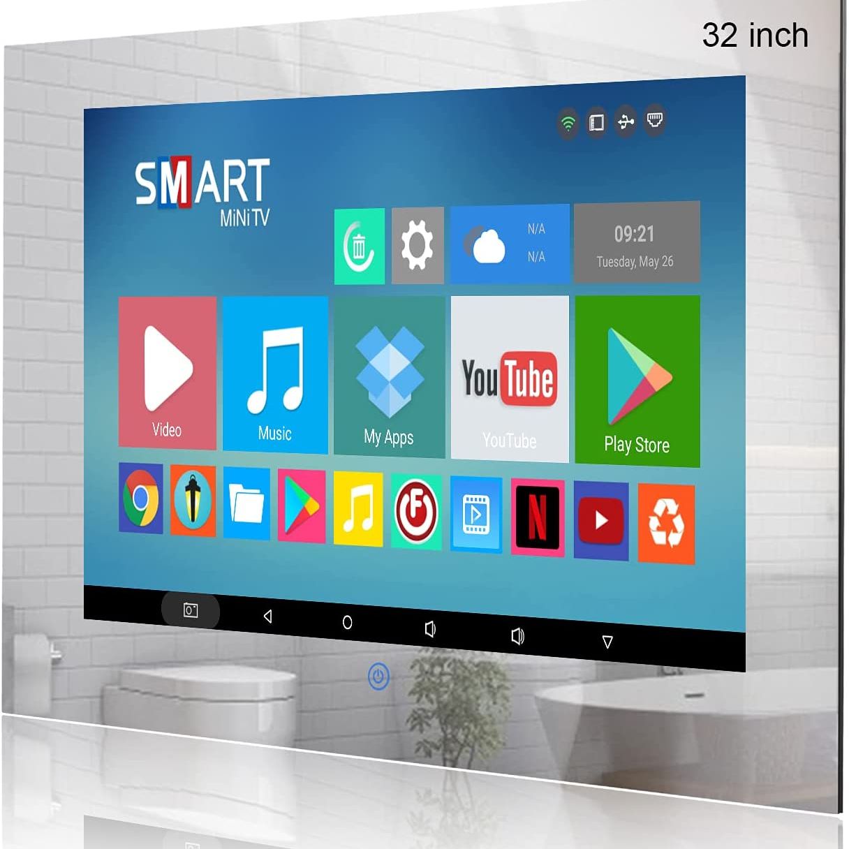 This bathroom mirror TV is not only a smart Android TV but also a digital TV with multi-function. In UK and DE and any other European countries, people can watch digital TV programmes like Freeview and received the satellite’s signal.